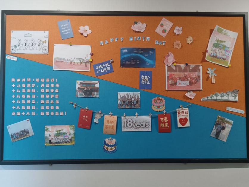 9月7日,是公司注冊成立的日子,今天的永康18歲了。在這個特殊的時刻,來自不同部門的同事,通過視頻、海報、文化宣傳欄等多種方式,表達著對永康的祝福。