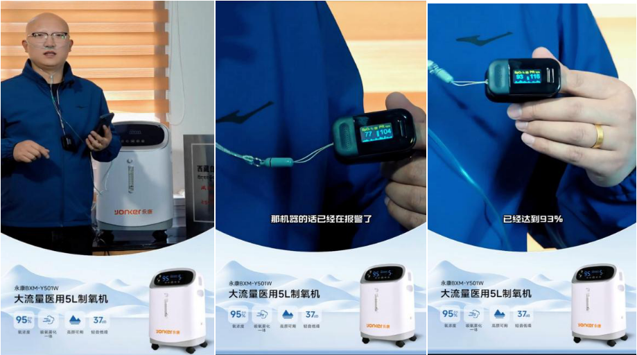 測試開始前,李總使用便攜式血氧儀記錄下基礎血氧飽和度,數值極低,反映了高原環(huán)境對人體的影響。隨后,他佩戴好鼻氧管,啟動永康制氧機,開始實時吸氧檢測實驗。整個過程被全程錄像,確保測試的真實性和透明度。令人振奮的是,短短一分鐘后,他的血氧飽和度有了顯著提升。這一立竿見影的效果,直觀展現了永康制氧機和多功能車載制氧機在提供高效氧氣補充方面的卓越性能。