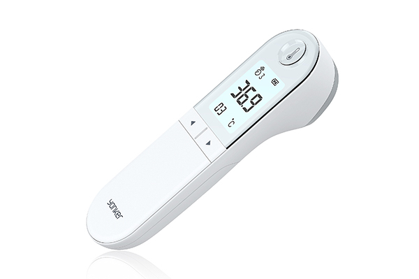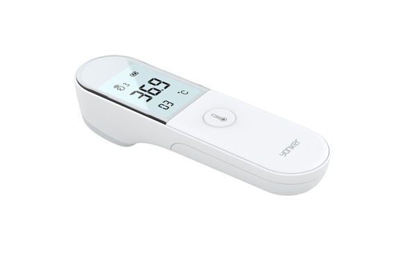 ●聲光警示:綠色、黃色、紅色背光燈提示體溫是否正常,同時具有聲音提醒。