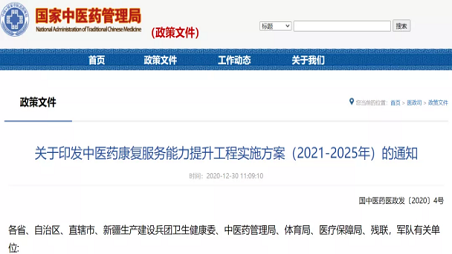 此前,國(guó)家衛(wèi)生健康委員會(huì)、國(guó)家中醫(yī)管理局、國(guó)家體育總局、國(guó)家醫(yī)療保障局、中國(guó)殘疾人聯(lián)合會(huì)、中央軍委后勤保障部衛(wèi)生局6部門還聯(lián)合印發(fā)《關(guān)于印發(fā)中醫(yī)康復(fù)服務(wù)能力提升工程實(shí)施方案(2021-2025年)的通知》(以下簡(jiǎn)稱“通知”),旨在充分發(fā)揮中醫(yī)在疾病康復(fù)中的重要作用,提高中醫(yī)康復(fù)服務(wù)能力和水平。