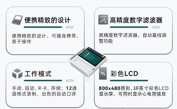 普邁思心電圖機(jī)擁有便攜精致的設(shè)計(jì),可隨身攜帶,易于操作,精確的脈搏識(shí)別功能,高精度數(shù)字濾波器,自動(dòng)基線調(diào)整,800x480圖形,10英寸彩色LCD顯示屏,可同時(shí)顯示心電圖信息。能幫助診斷各種心臟疾病,如心律失常,心肌缺血和心肌梗死。長(zhǎng)期跟蹤病情變化,有助于醫(yī)生調(diào)整治療方式。記錄人體正常的心電活動(dòng),發(fā)現(xiàn)隱藏的心臟健康隱患。